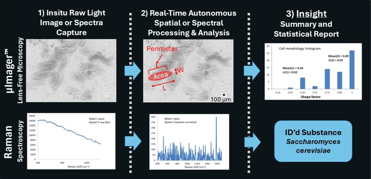 Providing real-time Insitu wide-field-of-view (100’s mm2), high-resolution (10 µm) images by detecting light scattered from microscopic samples.